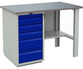 Слесарный верстак изготовлен из высококачественной листовой стали, имеет сварную или сборно-разборную конструкцию с возможностью различной компоновки инструментальных тумб. Для окраски верстака используется порошковая краска, способная выдерживать длительную температурную и механическую нагрузку.
